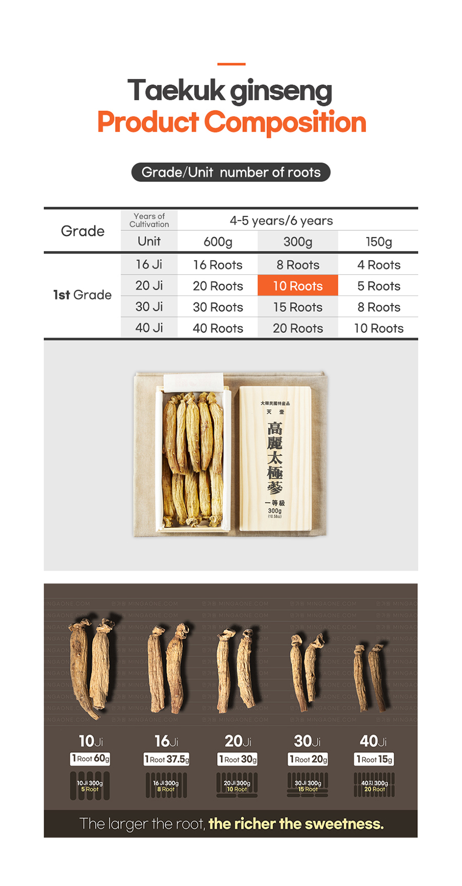 6-year-old Taekuk ginseng 1st Grade 20Ji 300g (10Roots)