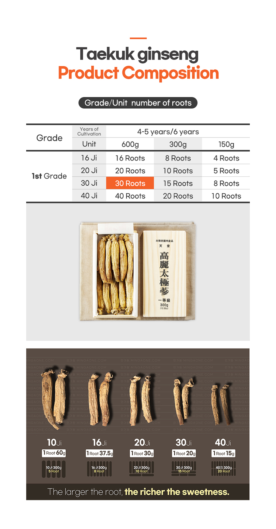 5-year-old Taekuk ginseng 1st Grade 30Ji 600g (30Roots)